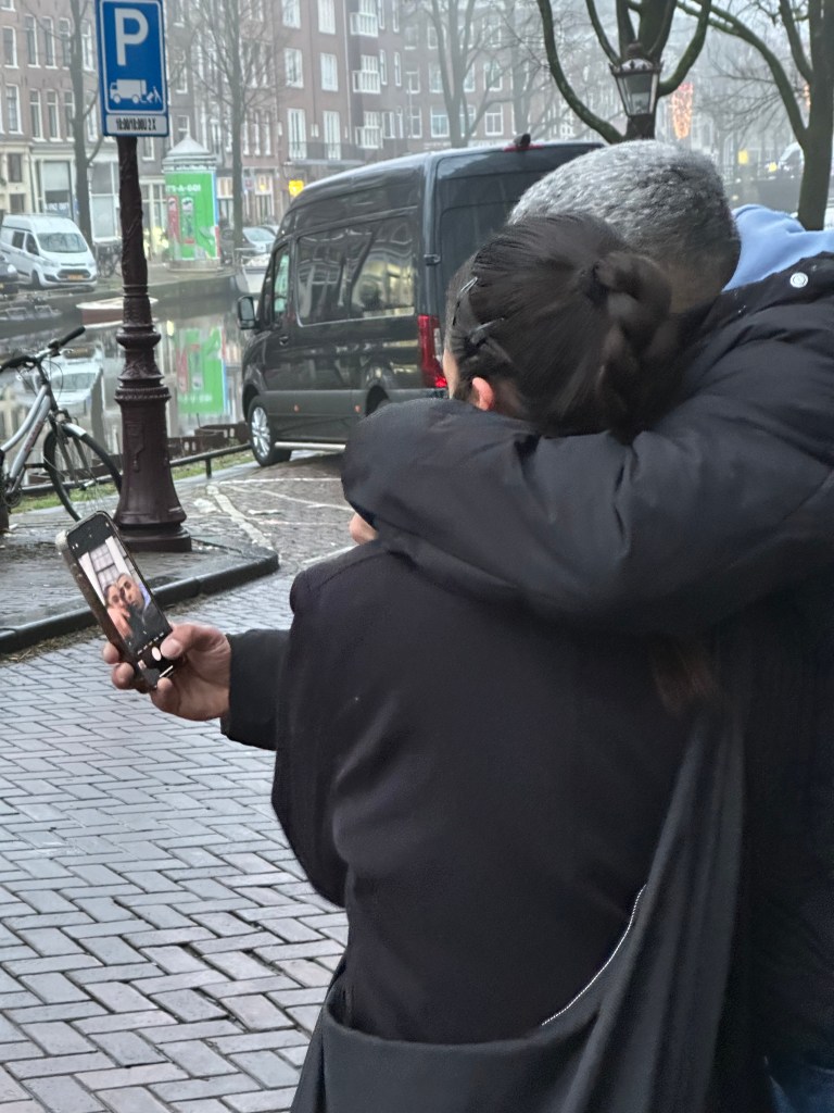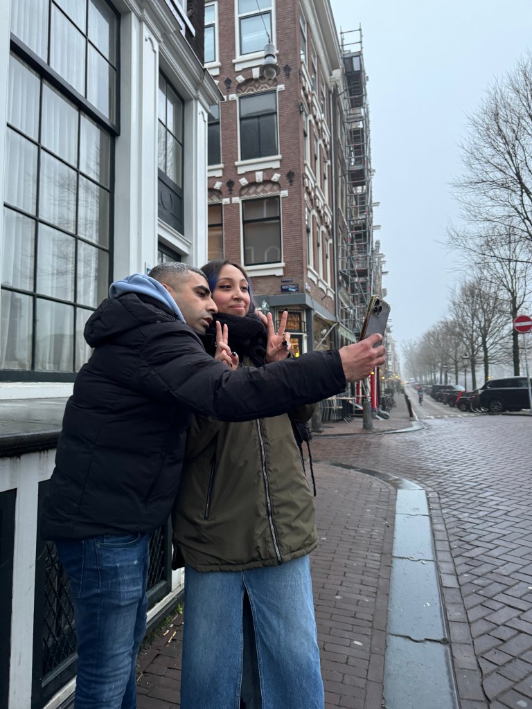 anyways we started super early so that we would be able to grab brekafast/a bev before being in a museum for over an hour. azul found this little spot called koffiehuis de hoek but on our walk their this weird guy in jeans was running up behind us so i told azul to move out of his way but then as soon as he got past us he stopped and started typing something on his phone and showing azul and apparently my man was in love with her and wanted to take pictures with her because he started typing something again and when he showed me it said soemthing along the lines of “tell your friend she’s so beautiful and i want to take apicyure with her” so azul agrees to take a picture with him AND THEN HE ASKS ME FOR A PICTURE so i reluctantly do so (bad bad choice) and my man had like a death grip on my neck and tried to tick his finger in my mouth so we ran away and that was our morning coffee. going from that to the anne frank huis was a crazy vibe switch up.