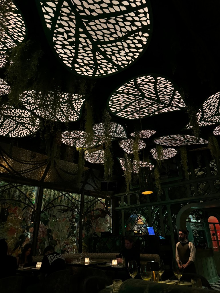 afterwards we walked about 20 minutes to one of the coolest restaurants ever, secret garden. i was kinda worried when we walked in that we wouldn’t be able to be sat because theres a dark, heavy velvet curtain seperating the hostest stand from the dining room and their ipad looked full as hell. but nonetheless after 2 short minutes we were able to be sat at the bar which is ideal for me. the interior of this place might be one of the coolest designs i’ve ever seen… there was a PEACOCK in the back, more private dining room???? i really regret not taking a picture but that just means you have to go yourself!! plus there are disco walls lining your walk to the bathroom upstairs. everything was honestly a win here. it wasn’t as expensive as i would’ve thought because…. ambiance, but the food was really fricking good but maybe i was just hungry (but absolutely NOTHING to go, it’s a rule), but the cocktails were ALSO really good. the bartender knew off rip that i’m from sf because i ordered a paper plane and new york sour (the real tests of a good bartender in my book) and he had to look them up but they were damn good (even though there was no amaro.)