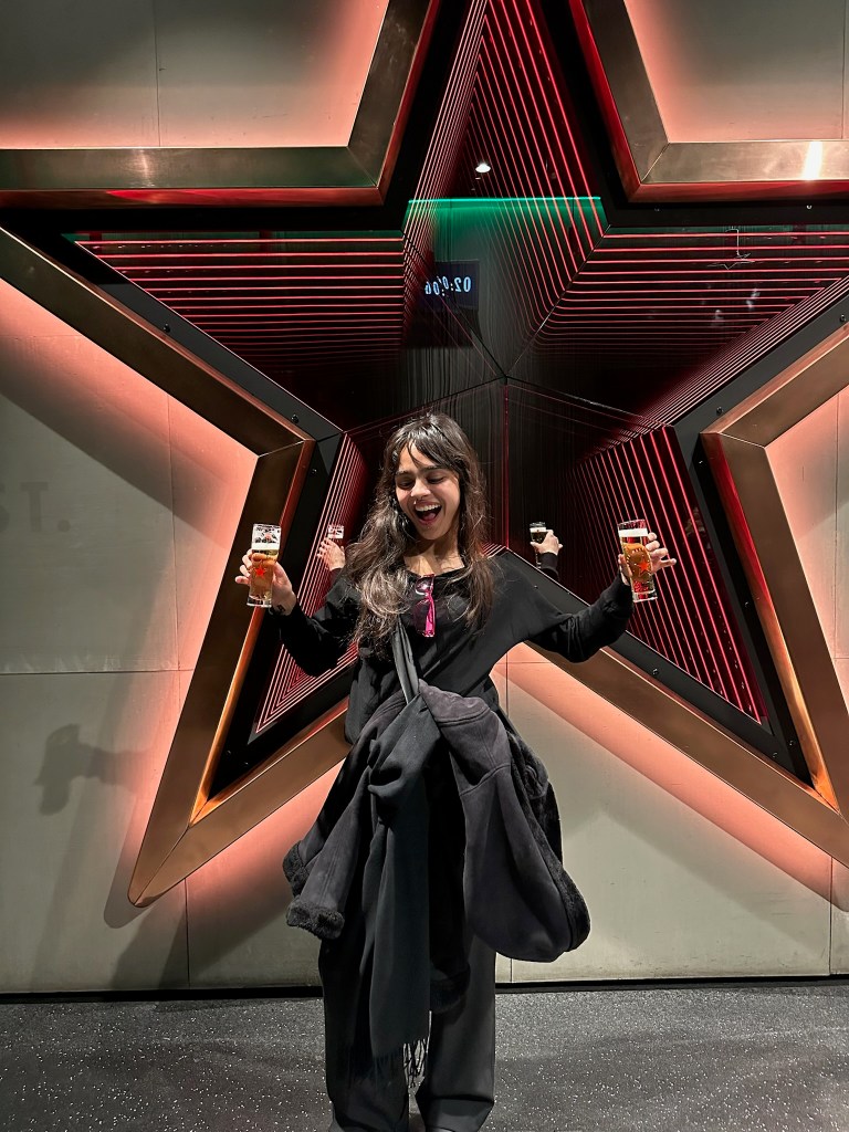 anyways, then 11am rolled around and it was time to drink beer!! so we walked maybe 10 minutes down the road to the heineken experience and i must say i was thoroughly impressed i enjoyed it a lot more than i thought i would. you basically start out in a big room and your “guide” explains how the tour works (it’s guided for like 5 minutes and then you’re free to move at your own pace and see all the little knick knacks.) and explains to you how the beer is made. if you’re a good girl and you pay attention, when they ask questions and you answer right you can win a free beer or in my case a free heineken pin!!! my pin sits proudly on my heineken apron heheh. most of the experience had to do with sports like f1 and soccer so there was a part where you could literally play fifa on a playstation???? but they also had cool little photo booths where you could do bike karaoke and just play with all the random filters. you guys know i’m a freak for a photo booth. i forgot what i did before each group gets sent to the bar (it feels like disneyland) but i won an extra beer so ….. proost?!?!?! (dutch cheers)